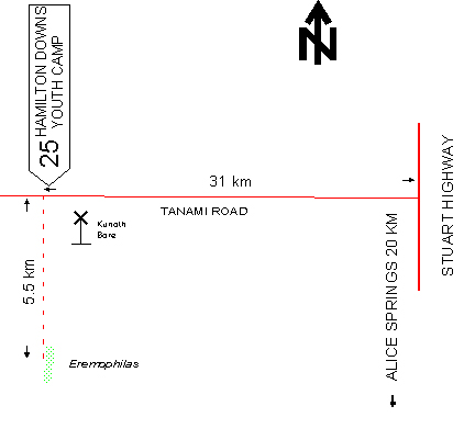 Note that there are many other similar areas of eremophilas that are easily accessible along the Stuart Highway, from about 40 km north of Alice Springs to Aileron, and along the Plenty Highway.